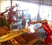 cutter gun is used. The advantage to use robotics for cutting is: • The spikes of the pales are extremely sharp (be careful when handling our panels!) • It allows the flexibility to produce a variety of shapes: While the most pale manufacturers use a press equipped with a custom made, expensive tool to press the crowns out of the steel, here the robot is simply re-program to cut out any required shape of spikes. This is, why one can manufacture RAZOR pales and EXTRA-RAZOR pales. • The tips of the spikes are heated in the process, and are therefore extra hard. At present, capacity production reaches up to 90 km of cut-to size angles per month. With the new production line, this will increase the cut-to size angles per month to up to 280km! (Operational as from July/August 2003). |